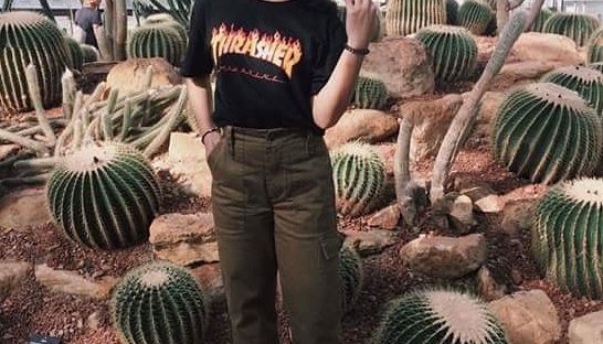1.เท่สุดๆ ไปเลยอ่ะ แค่มิกซ์เสื้อยืดกับกางเกงยีนส์ขาดเซอร์ๆ สวมหมวกแก็ปสีดำกับรองเท้าผ้าใบให้แมทช์กัน แต่งง่ายๆ แต่ได้คะแนนความเท่เกินร้อย
